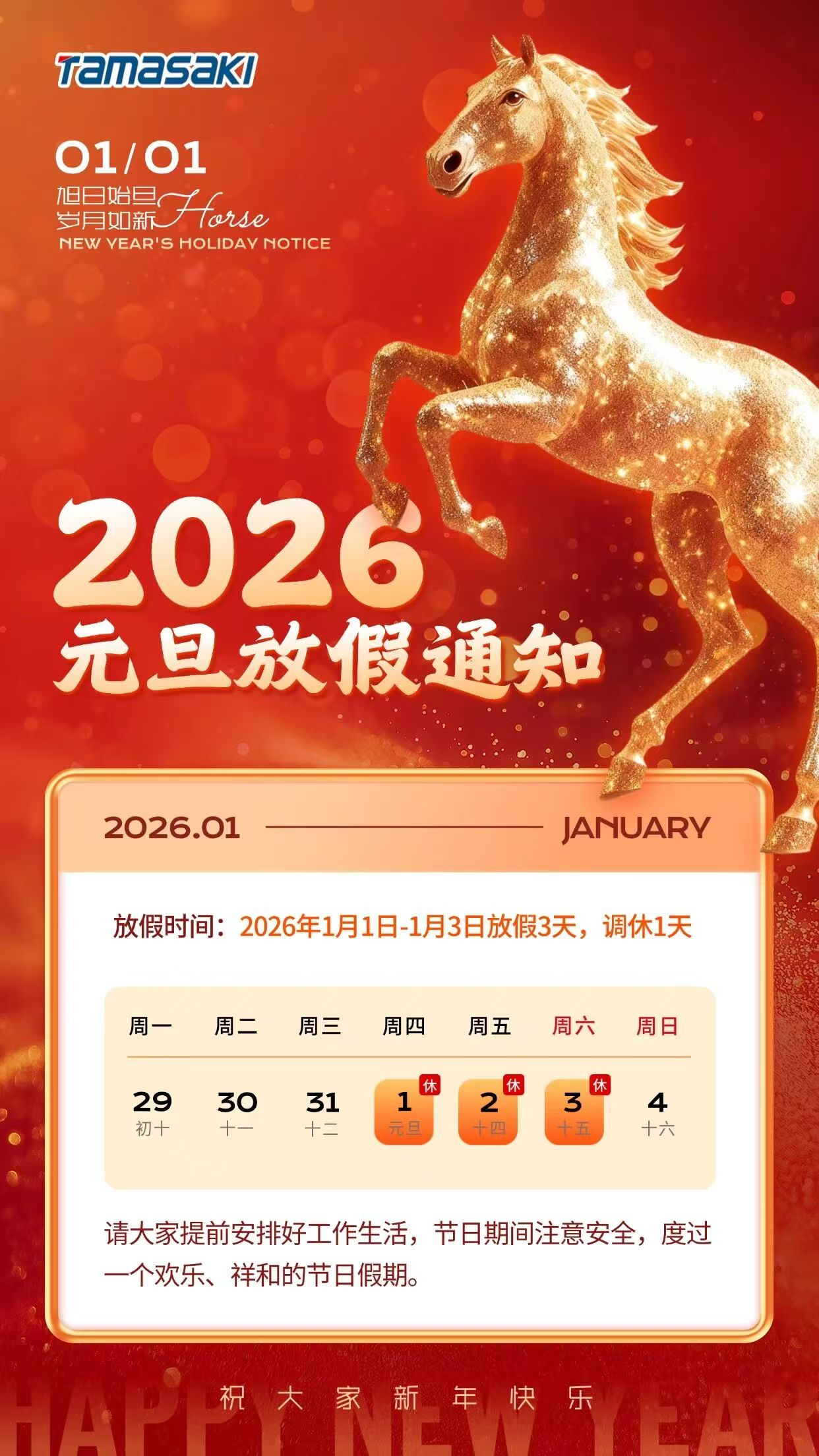 京都玉崎|2026年元旦放假通知安排